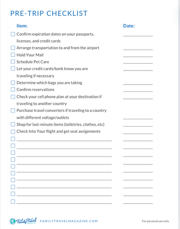 Pre-Trip Checklist